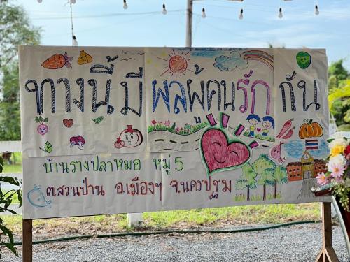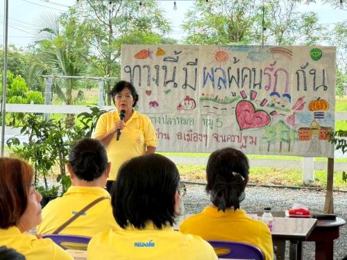ณ ศูนย์เรียนรู้เศรษฐกิจพอเพียง โคก หนอง นา บ้านรางปลาหมอ ของนางสาวจิราภรณ์ แพรอัตถ์ หมู่ที่ 5 ตำบลสวนป่าน อำเภอเมืองนครปฐม จังหวัดนครปฐม